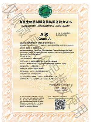 國(guó)家級(jí)有害生物防制認(rèn)證機(jī)構(gòu)A級(jí)證書/浙江省病媒生物防制服務(wù)機(jī)構(gòu)能力等級(jí)一級(jí)資質(zhì)