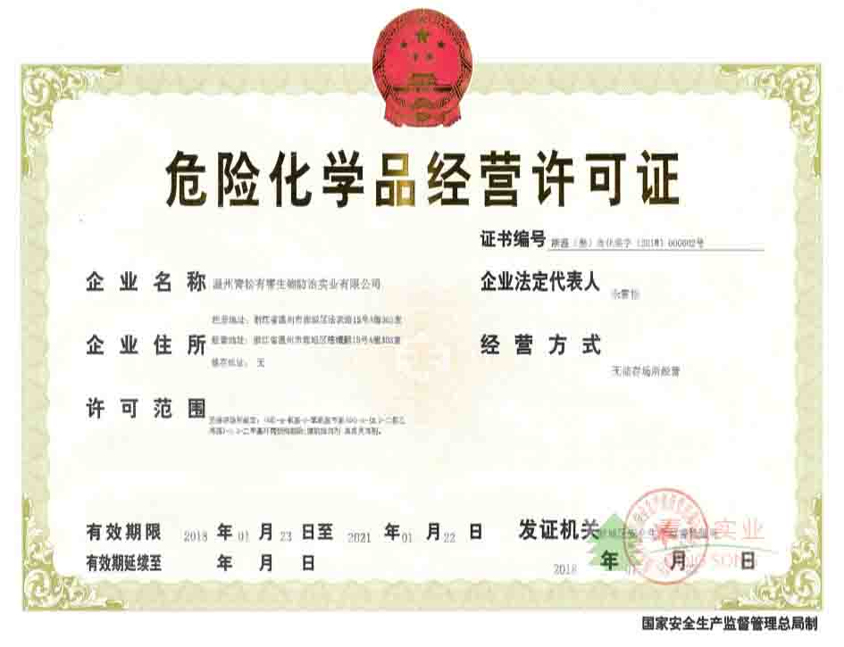 危險(xiǎn)化學(xué)品經(jīng)營許可證